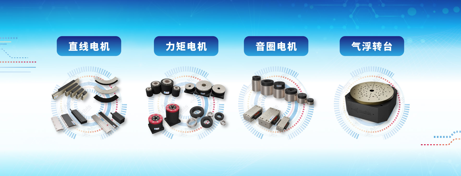 Akribis 致力于研发、设计和生产直驱电机(直线电机、力矩电机、音圈电机)和高精度运动平台,以及提供高精密系统解决方案。