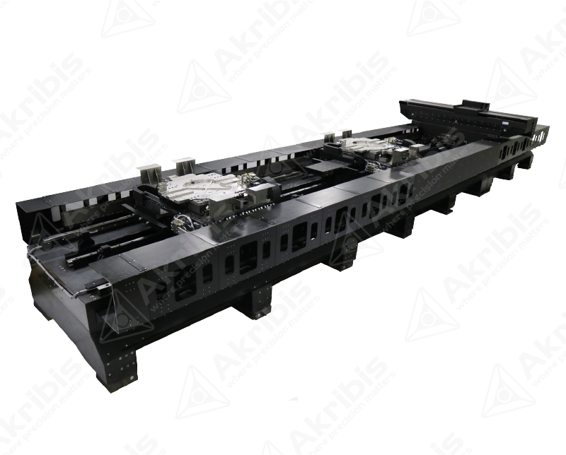 ●雅科贝思提供大理石基座+3 个 XY 十字叠加结构的整体运动台,及高性能控制系统的整套打包解决方案,成熟的大理石基座为2段拼接而成,便于运输和搬送,大理石长度8.5米。帮助客户完成液晶面板光配向制程中的上料、运输、面板位置调整等流程。