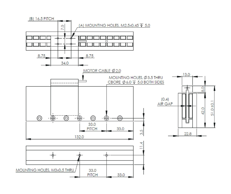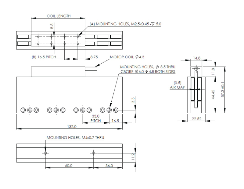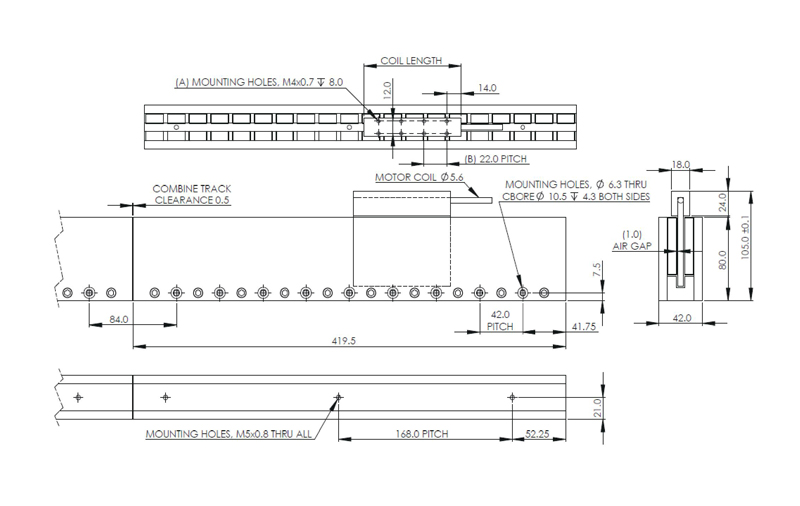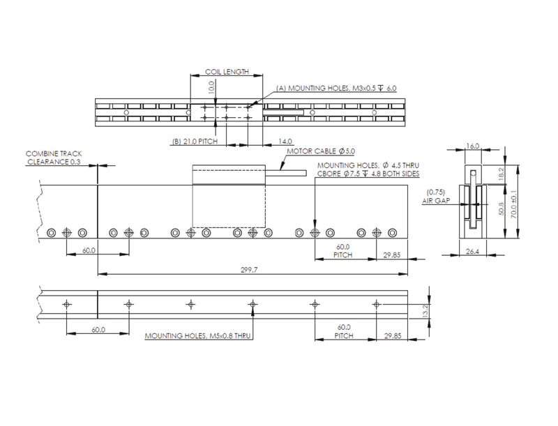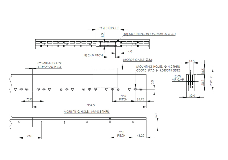电机线圈 | 线圈长度 (mm) | 持续推力 (N) @100℃ | 峰值推力 (N) |