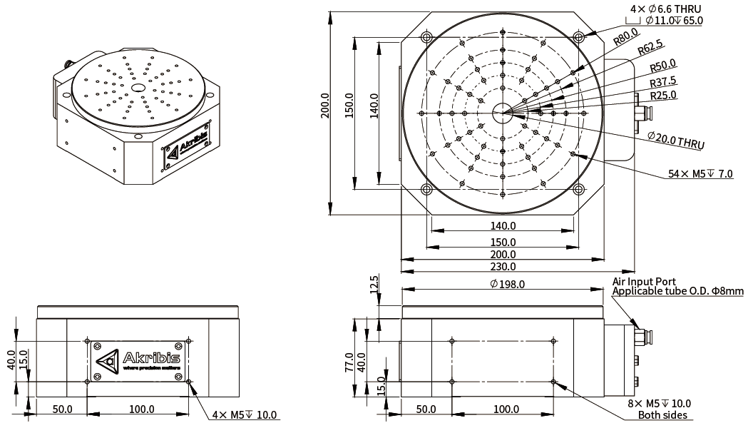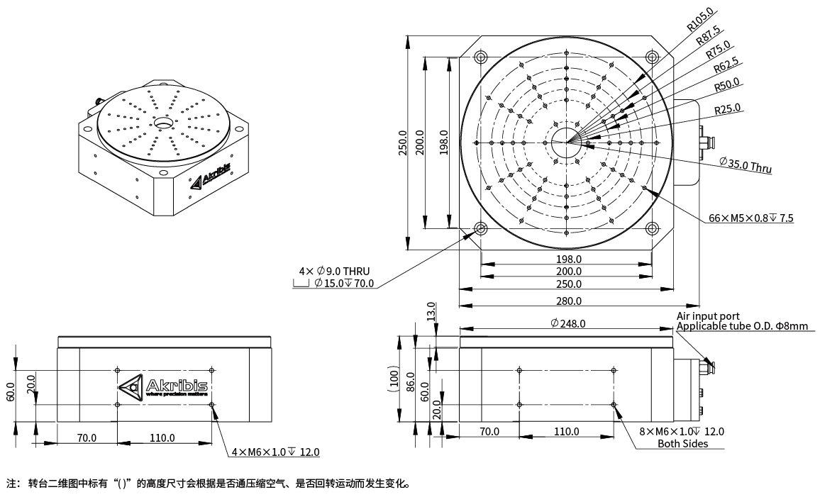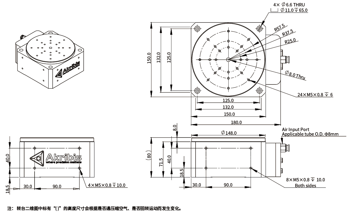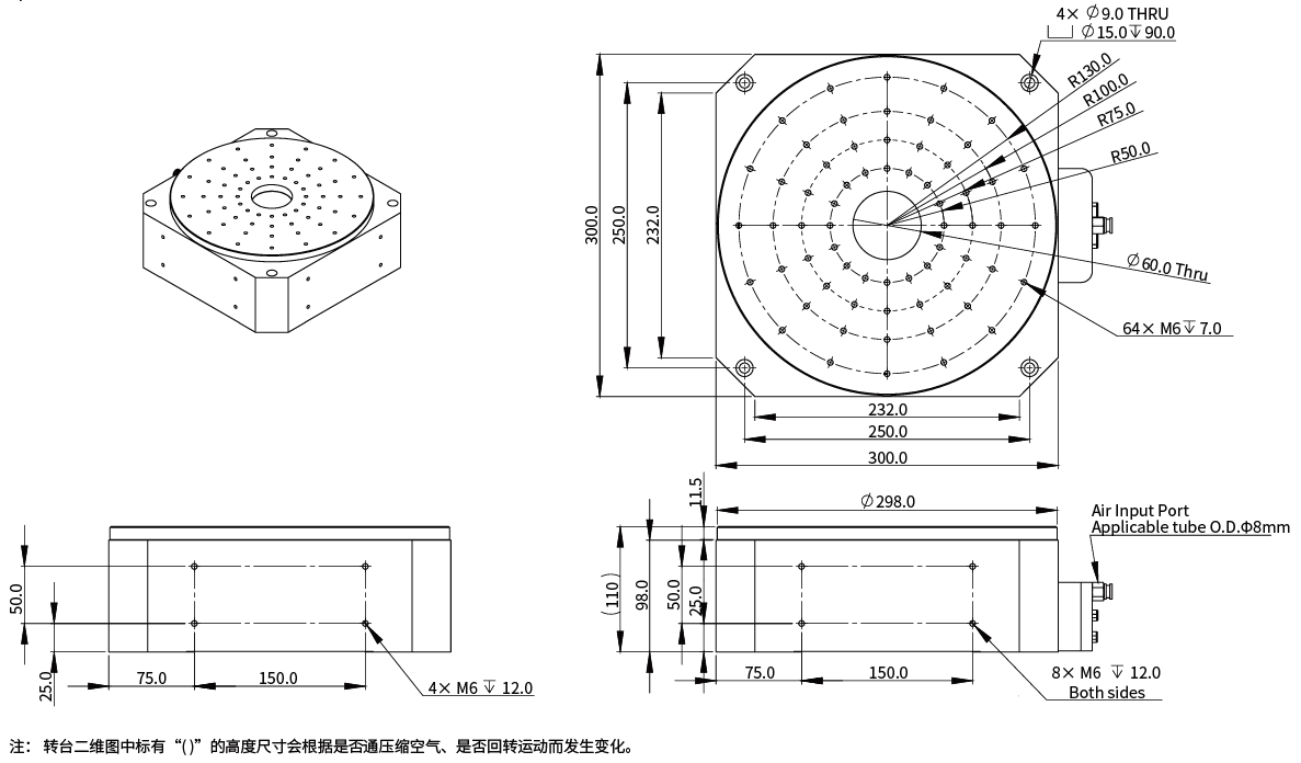 ①标有“( )”的高度尺寸会根据是否通压缩空气、是否回转运动而发生变化。